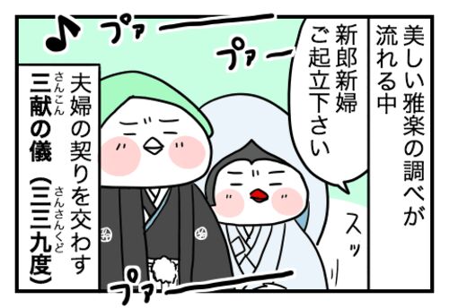 食い意地夫 前回はこちら。 神前式のハイライトといえば三三九度(正式には「三献の儀」)。 三三九度は奇数を良しとする中国の陰陽思想が基となっていて、おめでたい奇数である「三」を重ねて最高におめでたい数の「九」にするという、とても縁起の良い儀式…