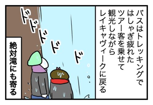 あんまり聞き返すのも悪いと思って…… 前回 トレッキングのあとは首都レイキャヴィークへ戻る帰路につきます。 わたしたち夫婦も周りのツアー客もみんなへとへとでしたが、容赦なく滝や観光名所も巡ります。 トレッキングのときは晴れていましたが、午後にな…