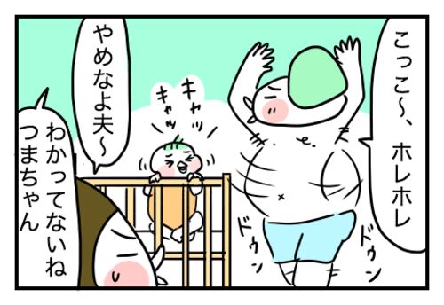 裸一貫で成り上がっておくれ…… 英才教育と称して、娘に裸踊りを教えている夫。 (そういえば踊っているぶんには夫の乳も怖くないみたいです) ▼参照 その甲斐あってか、こっこはわりと野生のゴリラみたいになってきました(ヨッコイゴリラ……)。 まずは「人…