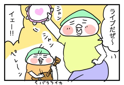 ライブ後の控え室で解散してました 「リズム隊」ってよく知ってるな4歳児、と思いつつ、泡沫のように結成と解散を繰り返す荒川おっと&こっこバンド。 また明後日くらいに再結成するでしょう……。 こっこにとって「ロックとは何か」──これからの長い人生で見…