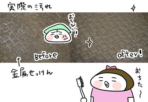 その後、シャワーで洗剤を流しながら硬めの細いブラシ(オーエのQQQポイントブラシを愛用)でこすったら、床がまるで引っ越してきたばかりのときのようにツルツルピカピカになりました。よかったー!!